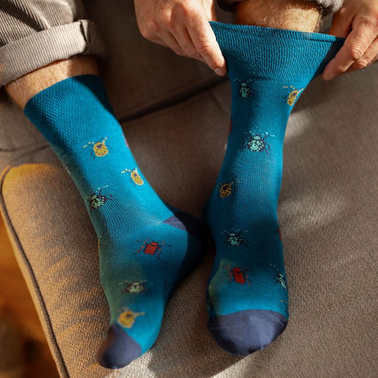 The socks showcase playful designs, featuring bees, beetles, vegetables and floral elements inspired by the RHS Lindley Collections, the world’s finest collection of botanical art.
